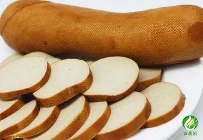 素雞以百葉(有些地區(qū)也叫千張)作主料,卷成圓棍形,捆緊煮熟,切片過油,加調(diào)料炒制而成的佳肴。也可做成魚形、蝦形等其他形狀??诟幸韵条r味,菜色 暗紅,形似雞肉,軟中有韌,味美醇香為主。